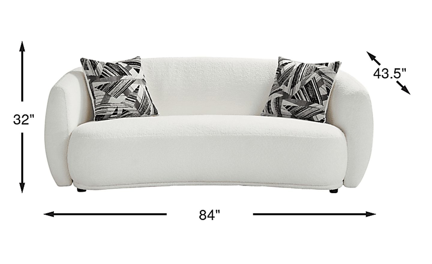Enhance your home with the Soho Heights sofa. Modern in design, this piece adds a minimalistic yet eye-catching touch to any space. Crafted with an ultra-low profile, Soho Heights pairs casual comfort with modish appeal. A large bench cushion provides spacious seating while the curved design and arched tuxedo arms add futuristic flair. Patterned black, gray, and ivory accent pillows add contrast against the white knitted fabric. Upholstery: 100% Polyester.