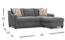 Casual grace with a sly glint of fashion-forward style in the Soho Place collection from Cindy Crawford Home are the keys to a trendy living room that adds an easy groove to an uptown zip. Upholstered in soft gray chenille, the sofa features chic sloped track arms and reversible scatter back pillows. The seat cushions are also reversible, perfect when it's time to move the floating chaise over for a fresh room arrangement. Welted seams on the arms and back pillows give the impression of a frame, heightening the contemporary look. Nestled away for overnight guests, a Sealy Royale mattress pulls out to provide a comfortable place for rest. Upholstery: 95% Polyester, 5% Linen.