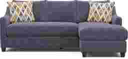 Casual grace with a sly glint of fashion-forward style in the Soho Place collection from Cindy Crawford Home are the keys to a trendy living room that adds an easy groove to an uptown zip. Upholstered in soft navy chenille, the sofa features chic sloped track arms and reversible scatter back pillows. The seat cushions are also reversible, perfect when it's time to move the floating chaise over for a fresh room arrangement. Welted seams on the arms and back pillows give the impression of a frame, heightening the contemporary look. Nestled away for overnight guests, a Nature's Bed gel foam mattress pulls out to provide a cool and comfortable place for rest. Upholstery: 95% Polyester 5% Linen.