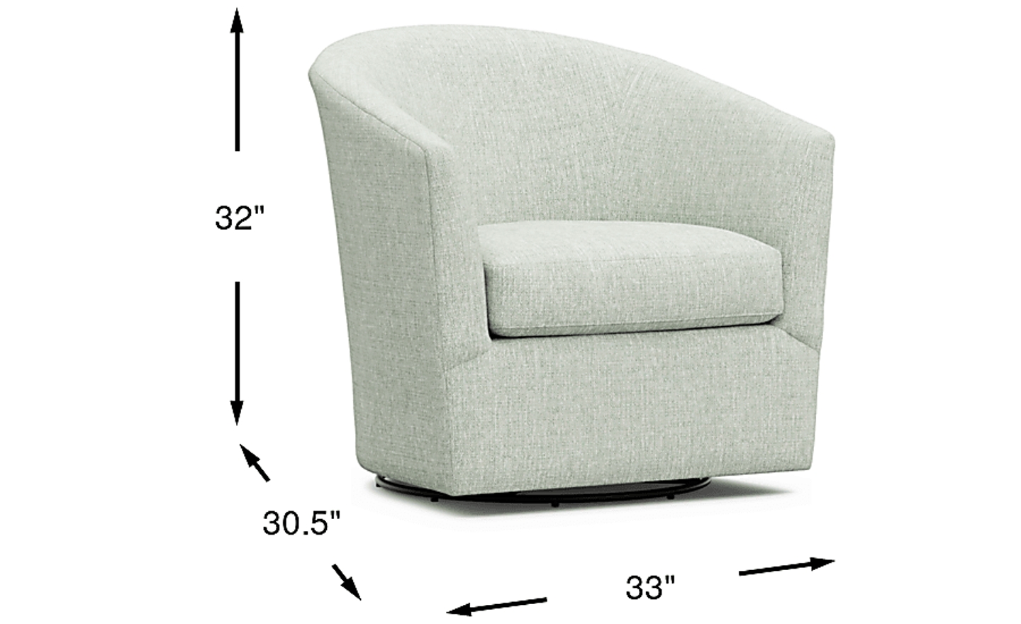This chair is exceptionally well-suited for smaller spaces due to its 33-inch width and elegant barrel-shaped design. The rounded profile allows it to fit comfortably into corners or tight seating arrangements without the "blocky" feel of traditional armchairs. Because the base provides a full 360-degree swivel, it serves as a versatile focal point in open-concept floor plans, allowing you to easily pivot between a conversation area and a television or window view without moving the furniture.