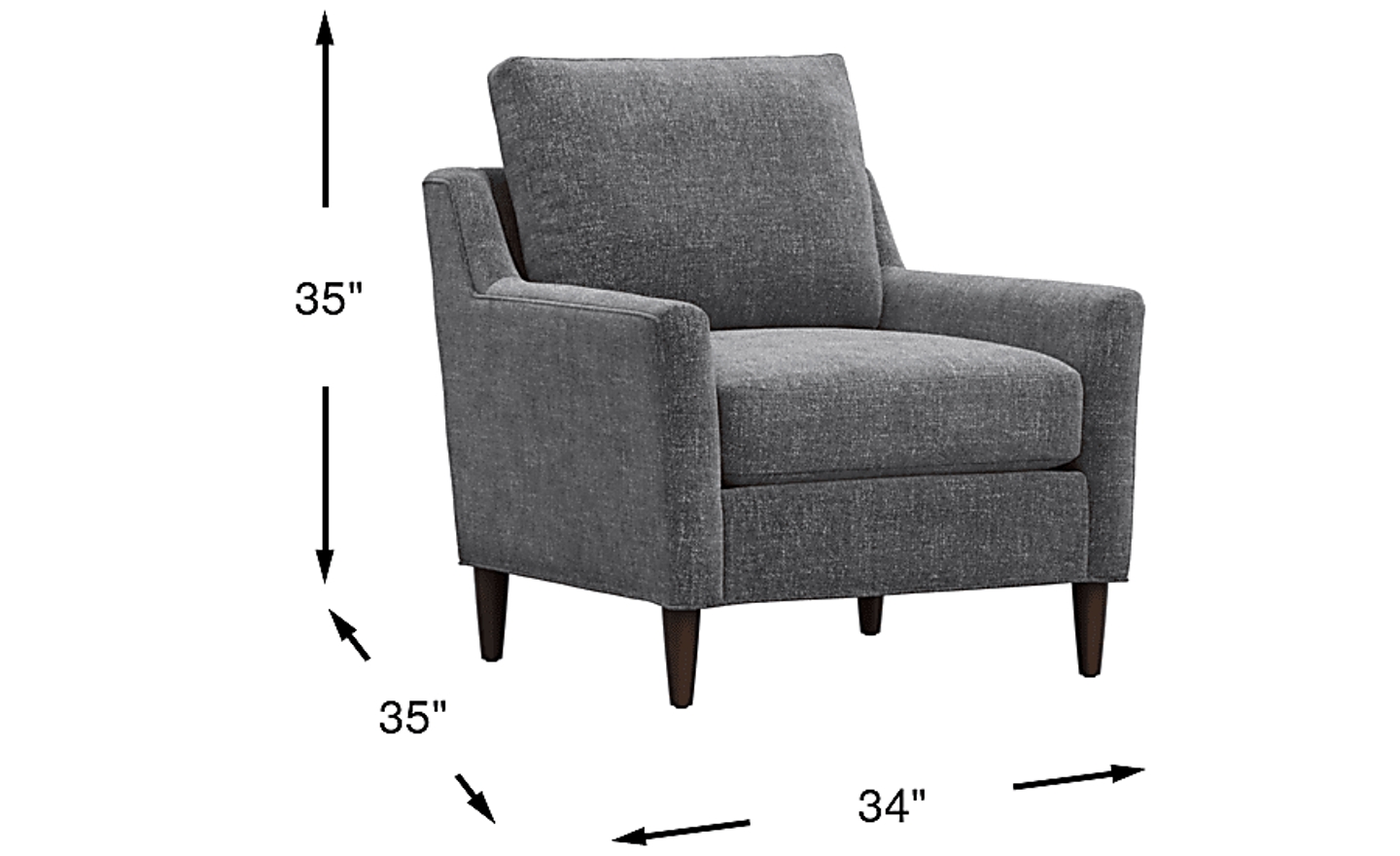 Casual grace with a sly glint of fashion-forward style in the Soho Place accent chair from Cindy Crawford Home are the keys to a trendy living room that adds an easy groove to an uptown zip. Upholstered in soft steel-colored gray chenille, this piece features chic sloped track arms and reversible seat and back cushions. Welted seams throughout give the impression of a frame, heightening the contemporary look. Upholstery: 95% Polyester, 5% Linen.