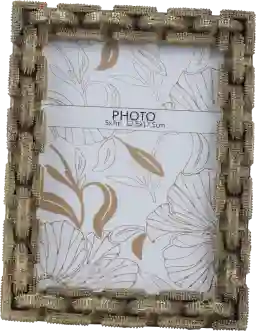 This tabletop picture frame will showcases your favorite picture with plenty of traditional charm. It's crafted from resin and aluminum in a rectangular shape fitting a 5' x 7' photo. The style features a chain link design in a lavish gold finish with a glam texture for some visual dimension - with a glass panel to protect your picture. Plus, this photo frame has an easy snap-in photo insertion in the back. Arrange it on your mantelpiece, sideboard, or dresser with a cherished image.