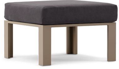 Effortlessly entertain or relax on your patio with the Solana collection. Each piece is made of rust-resistant aluminum in a high gloss taupe finish, featuring charcoal-colored cushions that are solution dyed for durable outdoor use. Open slat backs create clean lines that are beautifully accented by teak arms, lending a tropical touch with an excellent contemporary appeal to your backyard. The included accent pillows in complementing tones add a subtle pop of color. Select cushion colors also available in Sunbrella fabric.
