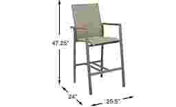 The Solana barstool offers comfortable durability for any outdoor space. Made with a rust-resistant sturdy aluminum frame in a powder coated taupe finish, the padded vinyl seat features Dacron padding for streamlined comfort. Easily spot cleaned with mild soap and water, the lightweight frame makes it easy to reposition while each arm is embellished with teak wood accents.