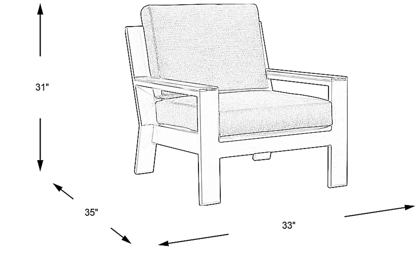 The Solana club chair has a casual look with clean, contemporary lines. Made with a rust-resistant aluminum frame in a powder coated taupe finish, teak accents on each arm add a hint of tropical flair. Upholstered in a durable solution dyed fabric for outdoor use, the open slat back creates a breezy look suitable for any outdoor space. High performance acrylic fabric.