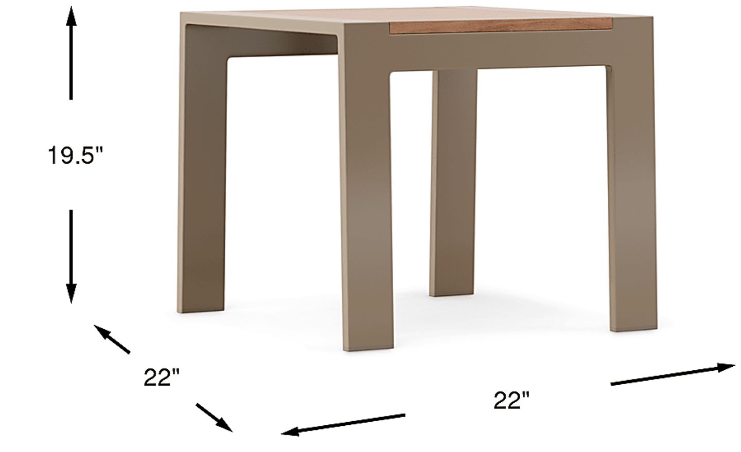 With its compact 22-inch square footprint and a height of 19.5 inches, this end table is perfectly scaled for smaller outdoor living spaces like apartment balconies or narrow patios. It provides ample surface area for drinks or decor while maintaining a low profile that fits comfortably alongside a chaise or outdoor lounge chair.