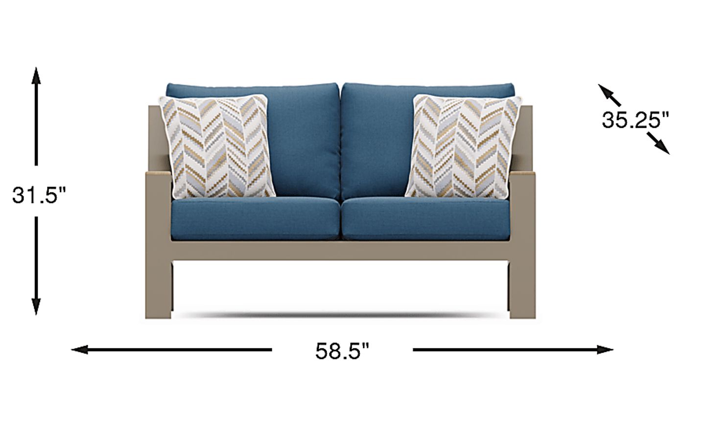 Solana Taupe Outdoor Loveseat With Blueberry Cushions
