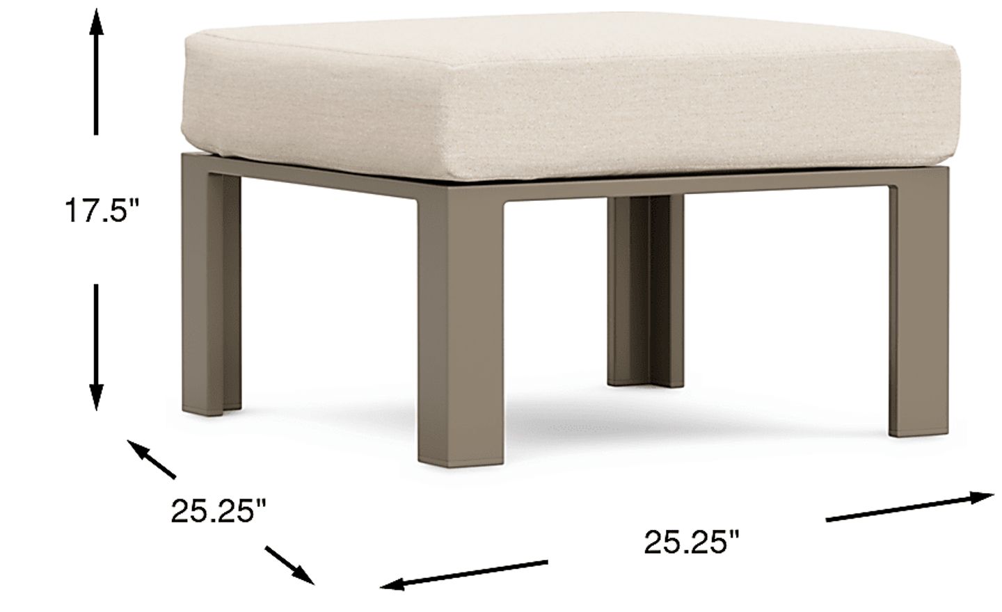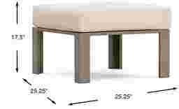 An ideal companion to its matching chair, the Solana ottoman provides a comfy, padded spot to prop up your feet. Topped with a buff-colored cushion upholstered in a durable solution dyed fabric, the sturdy powder coated taupe aluminum frame has clean lines. High performance acrylic fabric. Select cushion colors also available in Sunbrella fabric.