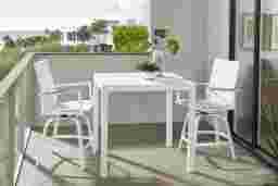 Solana White 3 Pc Outdoor Balcony Dining Set with Swivel Stools