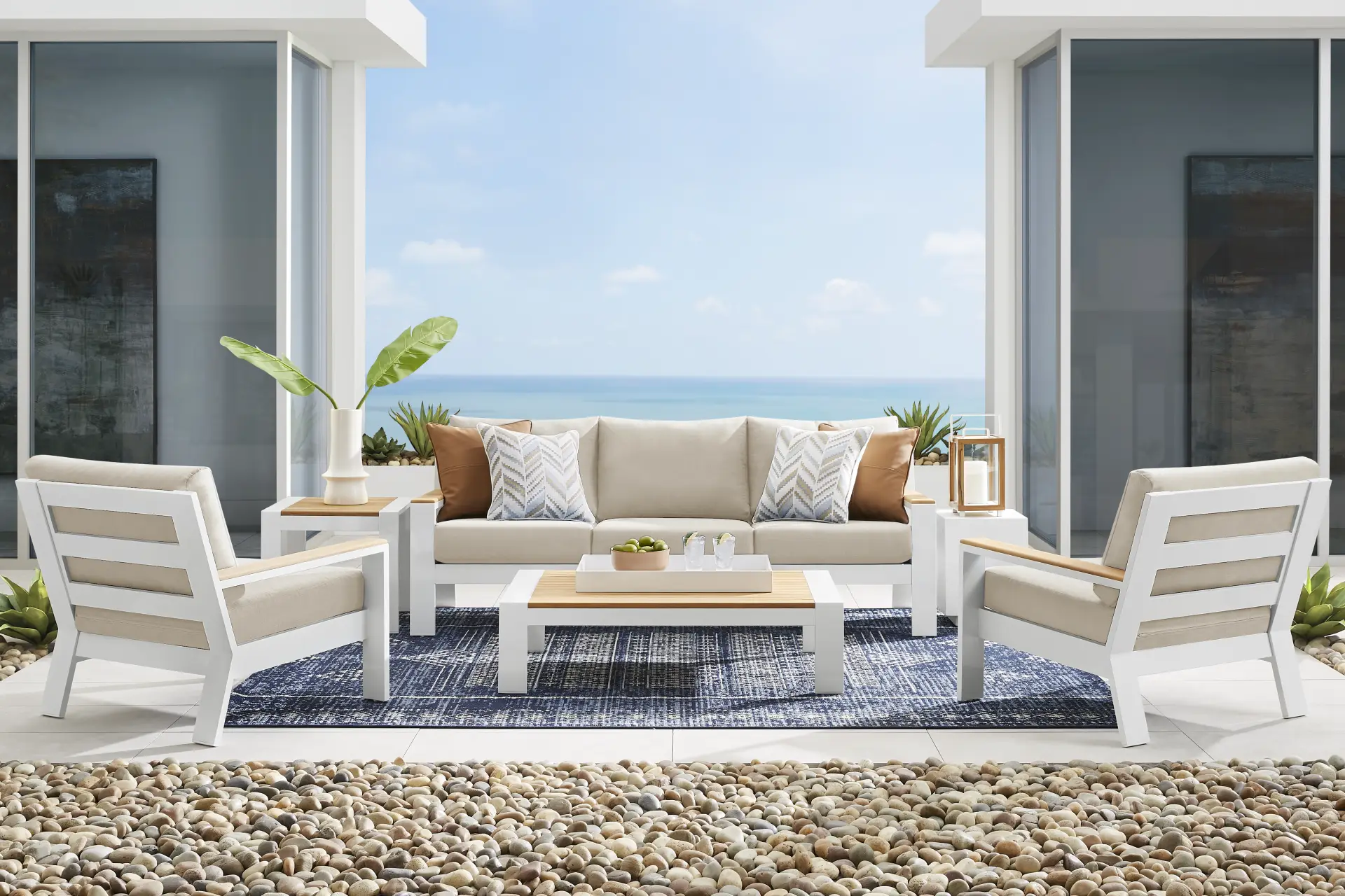 This sofa is engineered specifically for high-moisture environments. It features a rust-resistant aluminum frame protected by a powder-coated white finish. Aluminum is naturally resistant to corrosion and salt spray, making it the ideal material for coastal patios or humid southern climates where iron or steel frames might deteriorate.