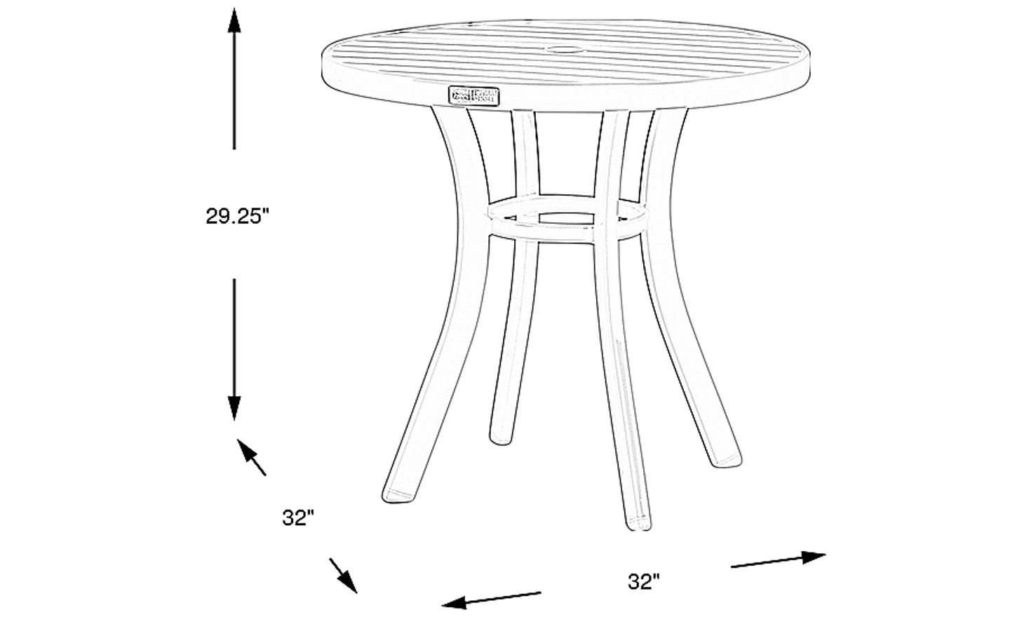 A 32-inch round table is an intimate choice, best suited for two people. It is the ideal size for a morning coffee setup or a small outdoor meal, offering enough surface area for plates and drinks while maintaining a small, space-saving footprint.