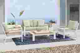 Solana White 4 Pc Outdoor Loveseat Seating Set With Bisque Cushions