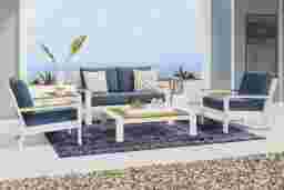 Solana White 4 Pc Outdoor Loveseat Seating Set With Blueberry Cushions