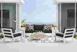 Solana White 4 Pc Outdoor Sofa Seating Set With Charcoal Cushions