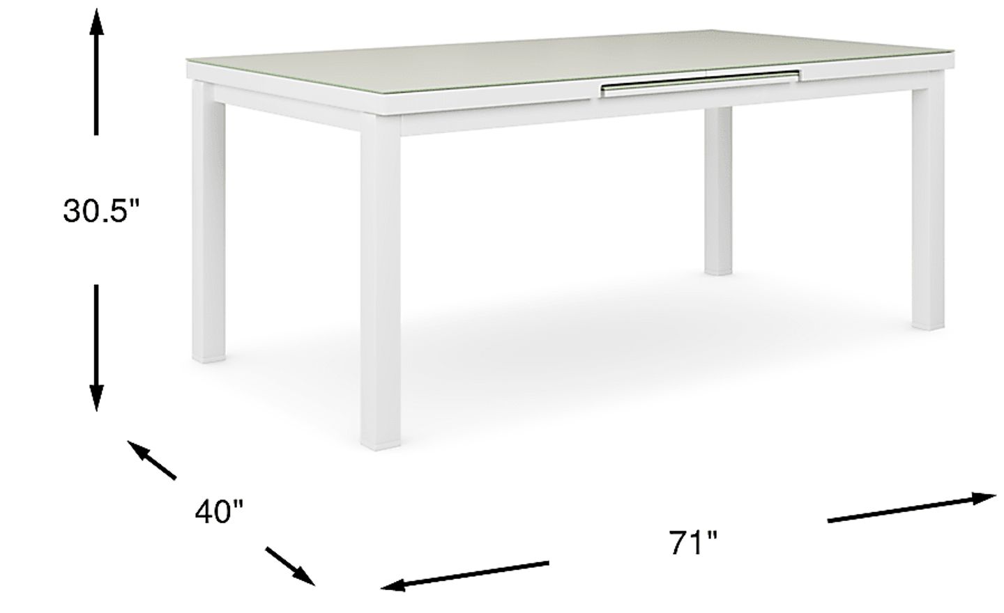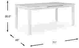 Enjoy casual mealtimes and transform your outdoor space into an entertainment hub for friends and family with the Solana dining table. Simply extend the table from 71" to 94" to expand the guest list. A sturdy aluminum frame in a high gloss white finish has a streamlined look with a casual feel thanks to the linen textured tempered glass top that is easy to wipe clean and resistant to finger prints and smudges. Wipe clean with mild soap and water.