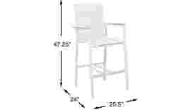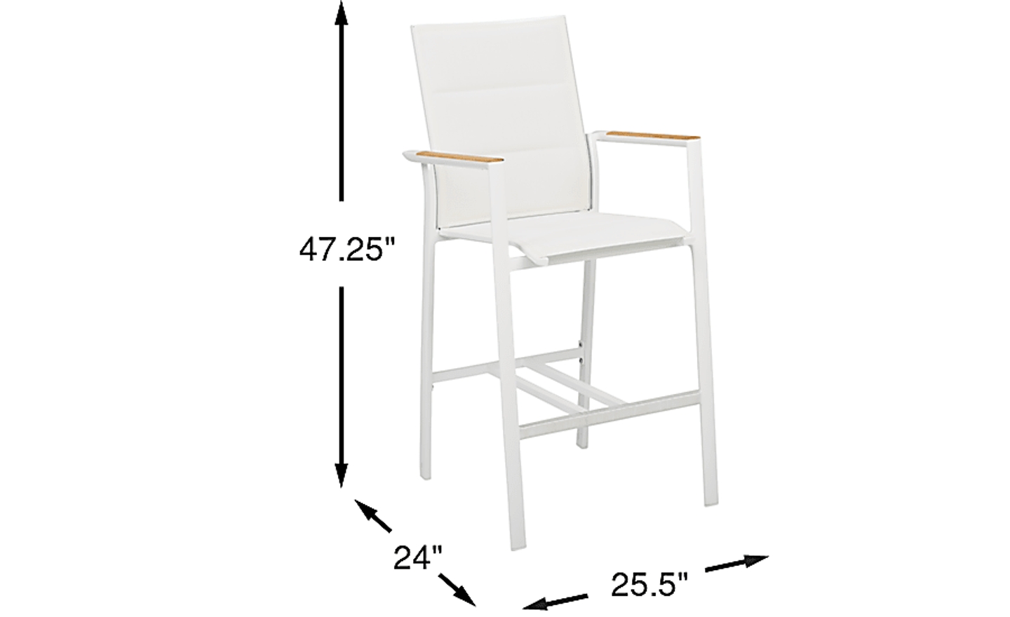 The Solana barstool offers comfortable durability for any outdoor space. Made with a rust-resistant sturdy aluminum frame in a powder coated white finish, the padded vinyl seat features Dacron padding for streamlined comfort. Easily spot cleaned with mild soap and water, the lightweight frame makes it easy to reposition while each arm is embellished with teak wood accents.