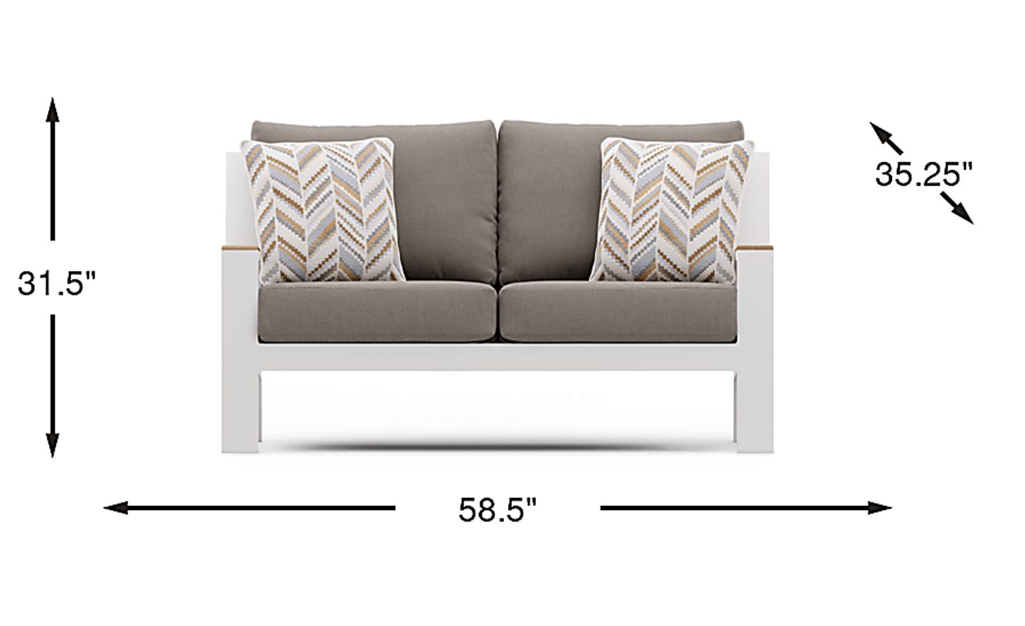 Solana White Outdoor Loveseat With Mushroom Cushions