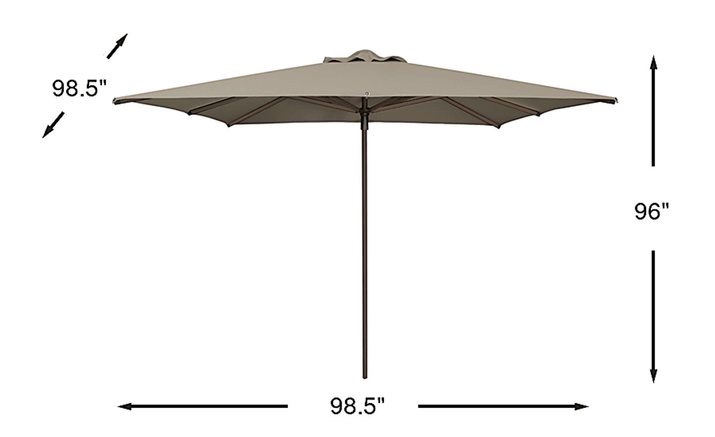 Effortlessly elevating every outdoor moment, the Soleil umbrella is where classic style meets modern ease. This 8' square market-style umbrella offers high 98% UV protection with Sunbrella fabric in an ash gray color. Durable too, Sunbrella fabric is known for its ability to resist fading, mold and mildew. When fully extended, the canopy provides shade coverage for tables up to 48". The sturdy aluminum pole is rendered in a powder coated bronze finish. A 120 lb. base (sold separately) is recommended for this umbrella. 100% Sunbrella fabric. To clean Sunbrella fabric remove dirt and spray on cleaning solution (water and mild soap), then use a soft bristle brush or sponge. Allow cleaning solution to soak into fabric and rinse thoroughly until soap residue is removed. Air dry. Do not dry clean.