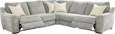 Like a fierce runway walk right into a warm and welcoming hug, the Somerset sectional from Cindy Crawford Home makes head-turning style a fashionable, family affair. This contemporary collection showcases soft chenille cord upholstery in soothing gray. Tight welted seams hug each curve, from the charming, rounded track arms to the loose back cushions. Dual power reclining seats include power adjustable headrests and footrests with hidden control switches for a uniform look. Beneath the surface, each seat features a luxuriously soft fiber fill for a down-like texture. Upholstery: 100% polyester. Includes dual power LAF recliner, dual power armless recliner, stationary corner seat, stationary armless seat and dual power RAF recliner.