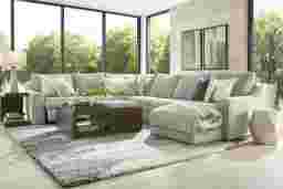 Like a fierce runway walk right into a warm and welcoming hug, the Somerset sectional from Cindy Crawford Home makes head-turning style a fashionable, family affair. This contemporary collection showcases soft chenille cord upholstery in soothing gray. Tight welted seams hug each curve, from the charming, rounded track arms to the loose back cushions. Dual power reclining seats include power adjustable headrests and footrests with hidden control switches for a uniform look. The stationary chaise is angled perfectly for supported relaxation. Beneath the surface, each seat features a luxuriously soft fiber fill for a down-like texture. Upholstery: 100% polyester. Includes stationary RAF chaise, 2 stationary armless seats, stationary wedge, dual power armless recliner and dual power LAF recliner.