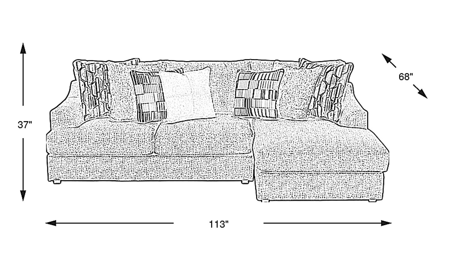 113.00"w x 68.00"d x 37.00"h