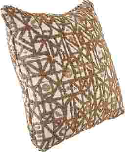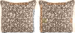 Striking lines and bold contrast take center stage with the Sophie toss pillow pair's artfully abstract pattern. This set's mesmerizing weave is made up of jacquard fabric with a expresso brown geometric motif over a warm taupe-beige background, creating a lattice of movement and rhythm. Upholstery: 95.9% Polyester, 3.5% Rayon, 0.5% Linen.