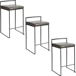 The simple elegance of the original design Sora Brown Counter Height Stool Set of 3 belies its astonishing comfort. Lightweight thin lines create a simplistic fully assembled frame and backrest to support a thick padded seat cushion. A stackable design for easy storage makes this a great stool for entertaining. With their simple stylishness, the Sora Stone Counter Height Stools are sure to match any decor. Available in many color combinations, choose the look that best fits your dining space. Customer assembly required.