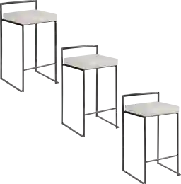 The simple elegance of the original design Sora Gray Counter Height Stool Set of 3 belies its astonishing comfort. Lightweight thin lines create a simplistic fully assembled frame and backrest to support a thick padded seat cushion. A stackable design for easy storage makes this a great stool for entertaining. With their simple stylishness, the Sora Stone Counter Height Stools are sure to match any decor. Available in many color combinations, choose the look that best fits your dining space. Customer assembly required.
