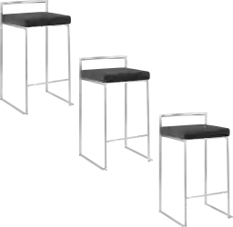 The simple elegance of the original design Sora V Black Counter Height Stool, Set of 3 belies its astonishing comfort. Lightweight thin lines create a simplistic fully assembled frame and backrest to support a thick padded velvet seat cushion. A stackable design for easy storage makes this a great stool for entertaining. With its simple stylishness, the Sora is sure to match any decor. Available in many color combinations, choose the look that best fits your dining space. Customer assembly required.