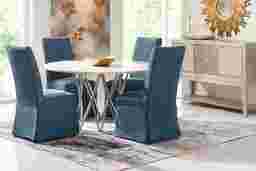 Soraya Street White 5 Pc Dining Room With Navy Side Chairs