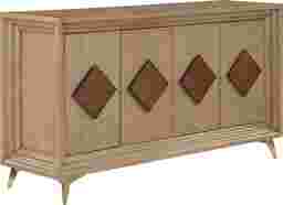 This stunning Sorghum credenza is crafted from high-quality pine wood and ash veneers, finished with a sleek wheat brown hue. The striking diamond-shaped hardware on the doors imparts a sense of sophistication to the overall design. With the upgraded European hinges, the doors open seamlessly, revealing an interior thoughtfully designed with two fixed shelves and cord management features that maintain a clean and organized look. Customer assembly is required.