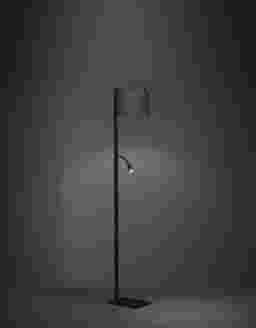 The Sorrento Edge Black Floor Lamp is a modern multitasker, blending minimalism with practical design. Its sleek black frame rises with quiet confidence, supporting a fabric drum shade that diffuses soft ambient light for your room. Below, a flexible LED reading arm offers targeted illumination exactly where you need it, perfect for late-night reads or focused work. With its slim profile and dual functionality, this floor lamp is ideal for living rooms, bedrooms, or cozy reading corners. Elegant, efficient, and effortlessly modern, it's lighting with purpose and polish. Partial assembly may be required.