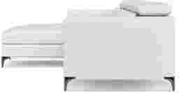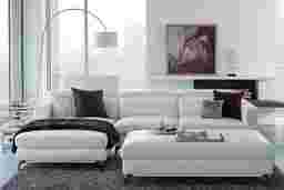 Modern elegance with a contemporary twist, the Sorrento sectional offers indulgent comfort with a side of quality. Upholstered in white soft woven fabric, this sectional is far from ordinary thanks to special touches such as quilted back cushions, ratchet style headrests, contrasting stitching and sleek chrome finished legs. Seating up to three adults, this luxurious sectional takes center stage in any living space. 85% Polyester; 15% Polyurethane.
