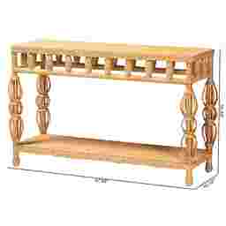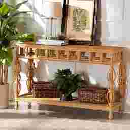 Absolutely. With a slim 16-inch depth and a 48-inch width, this table is specifically designed to provide a functional surface without obstructing high-traffic areas. Its bohemian, open-shelf design and flared legs create a "visual lightness" that helps small rooms or narrow hallways feel more expansive. The natural beige and white color palette further enhances this effect by reflecting light, making it a strategic choice for urban dwellings or compact foyers.