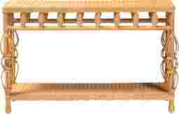The incredible artistry of the Soulware natural console table brings an aura of rustic elegance to your space. This bohemian piece is handcrafted from sustainably sourced natural rattan. Its crisp tabletop and open shelf are beautifully accentuated by braided rattan embellishments for a chic modern look from any angle. The Soulware will arrive fully assembled and features flared rattan decor embellishments along its legs that add exotic flair to the familiar geometry of the piece. With enchanting design aesthetics at every point, this console table is sure to elevate any arrangement.