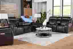 Sound Tech By Shaq Black Leather 8 Pc Triple Power Reclining Living Room With Audio