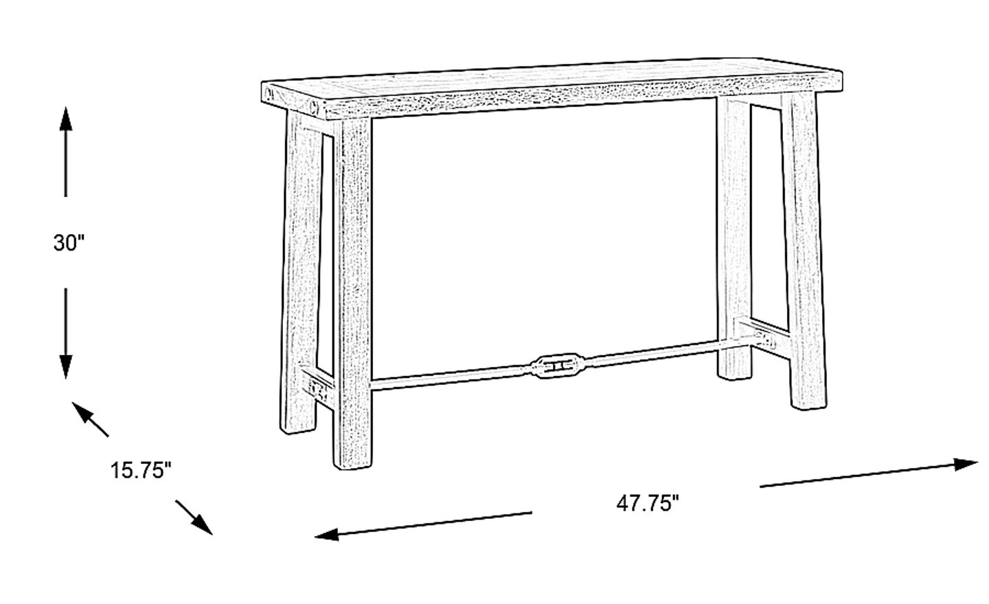This table measures 47.75" in length and 30" in height. For the most balanced look, designers recommend that a sofa table be the same height as the back of your couch or slightly lower. Since 30" is a standard height for many modern sofas, this piece is designed to sit flush or just below the cushions, providing a convenient surface for lamps or decor without obstructing your view.