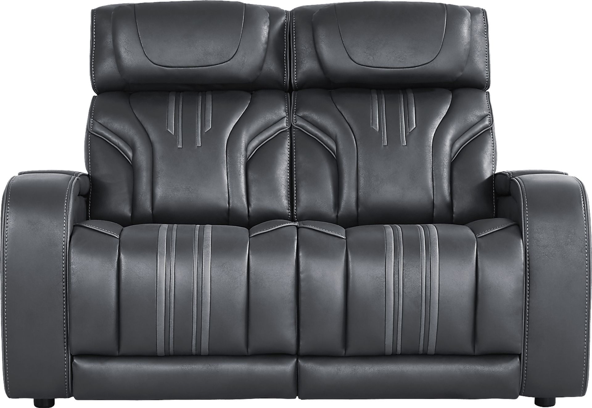 Relax and feel the stresses of daily life drift away with the indulgence of the Southlake loveseat's luxurious curves and stunning lines. This piece offers next generation living room & home theater style, as well as exceptional comfort in a silky soft, navy blue microfiber. Decorative top stitching and contrasting two-tone lines cut fascinating shapes inside a plush and welcoming silhouette. Each arm includes a hidden storage compartment. Upholstery: 100% Polyester.