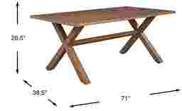 Make the Southport dining table your headquarters for cookouts, refreshments and outdoor socializing. The 39 x 71 inch plank-style top has a farm house feeling with a hand painted tan finish. Crafted to look like wood, the table is made with durable, low maintenance aluminum. X-shaped legs provide sturdy support.