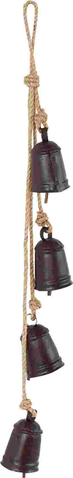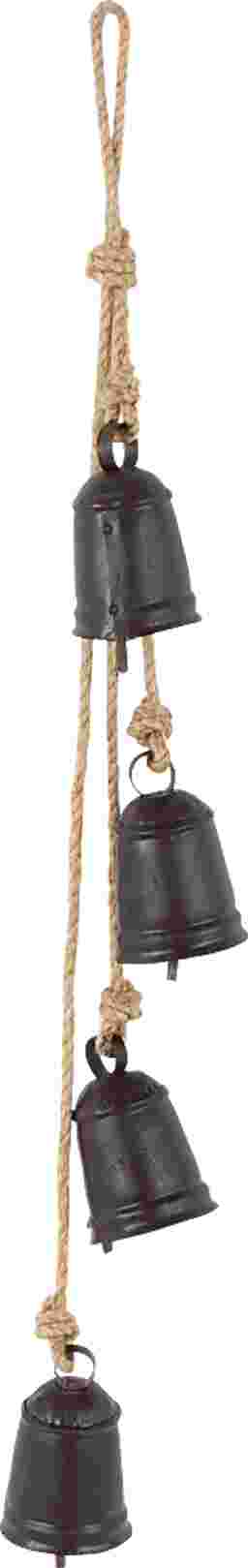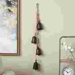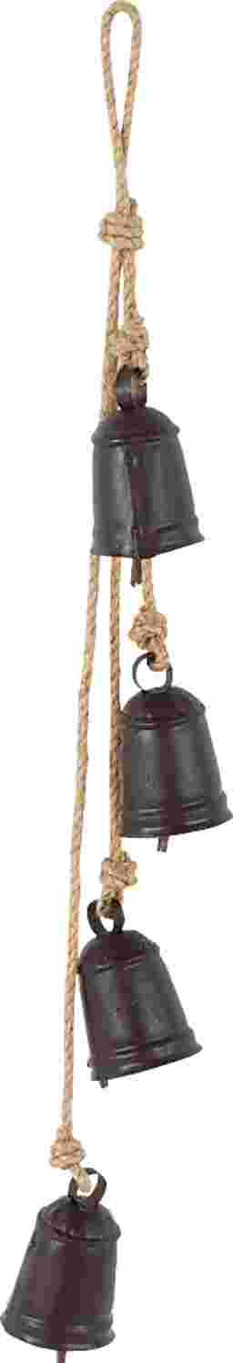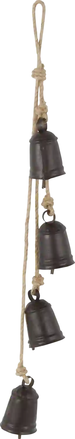 Designed with rugged beauty and an earthy charm, where natural simplicity, warmth, and organic materials create a wholesome atmosphere. The Sovoni indoor/outdoor decorative bells are crafted from durable metal and jute rope, ensuring lasting use and adding a touch of rustic elegance to your decor. Cluster bells hanging on a rope feature a matte black finish with brown jute rope that adds a charming rustic touch. These iron decorative bells come in various sizes and shapes, each featuring a jute hanging rope for easy display, adding a serene and decorative touch to your space.