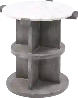 This chairside table features a cool gray finish and a naturally sourced marble top that adds style to your living room or den. It's crafted from solid mango wood that is built on a rounded base with a cross design. The sleek white marble top features unique grey veining and is ideal for placing a table lamp, books, or a vase of fresh flowers. Customer assembly is required.