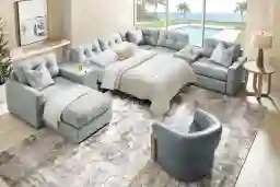 The ModularOne system is designed for complete customization. Every piece in this 7-piece set is fully upholstered on all sides, meaning the individual modules—including the chaise, seats, and consoles—can be moved and reconfigured to fit your specific room layout. This flexibility is ideal for homeowners who enjoy refreshing their space or those who need to adapt their seating for different occasions, like large game-day gatherings or cozy movie nights.