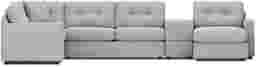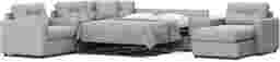Discover the limitless possibilities of the Drew & Jonathan ModularOne, thoughtfully designed with comfort and flexibility in mind. This customizable seating solution features individual pieces that can be reconfigured to the shape you need for game days, sleepovers, or just everyday relaxation. Each piece is upholstered on all sides in handsome spa textured fabric. The collection boasts welted track arms, top-stitched seat cushions and tufted back cushions for an elegant silhouette. Two media consoles offer storage, USB ports and wireless charging, bluetooth-enabled speakers, and double as side tables with acrylic tops. A Sealy Royale mattress is tucked inside the armless loveseat for guests who would like to extend their stay. Includes RAF chaise, LAF seat, two media consoles, wedge seat, armless chair, and loveseat. Upholstery: 100% Polypropylene