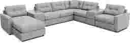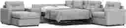 Discover the limitless possibilities of the Drew & Jonathan ModularOne, thoughtfully designed with comfort and flexibility in mind. This customizable seating solution features individual pieces that can be reconfigured to the shape you need for game days, sleepovers, or just everyday relaxation. Each piece is upholstered on all sides in handsome spa textured fabric. The collection boasts welted track arms, top-stitched seat cushions and tufted back cushions for an elegant silhouette. Two center consoles provide hidden storage and double as side tables with sleek acrylic tops. A Sealy Royale mattress is tucked inside the armless loveseat for guests who would like to extend their stay. Includes LAF chaise, RAF seat, two consoles, wedge seat, armless chair, and loveseat. Upholstery: 100% Polypropylene