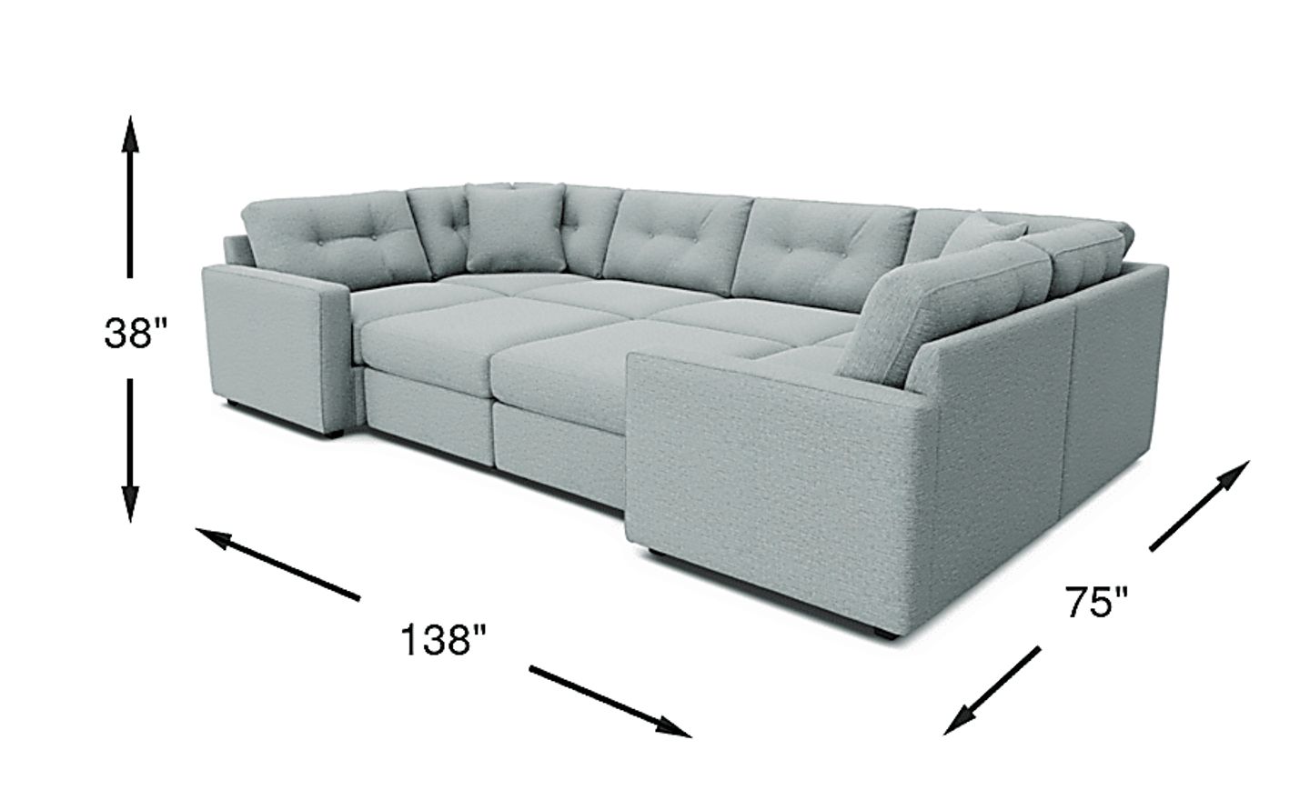 138.00"w x 75.00"d x 38.00"h