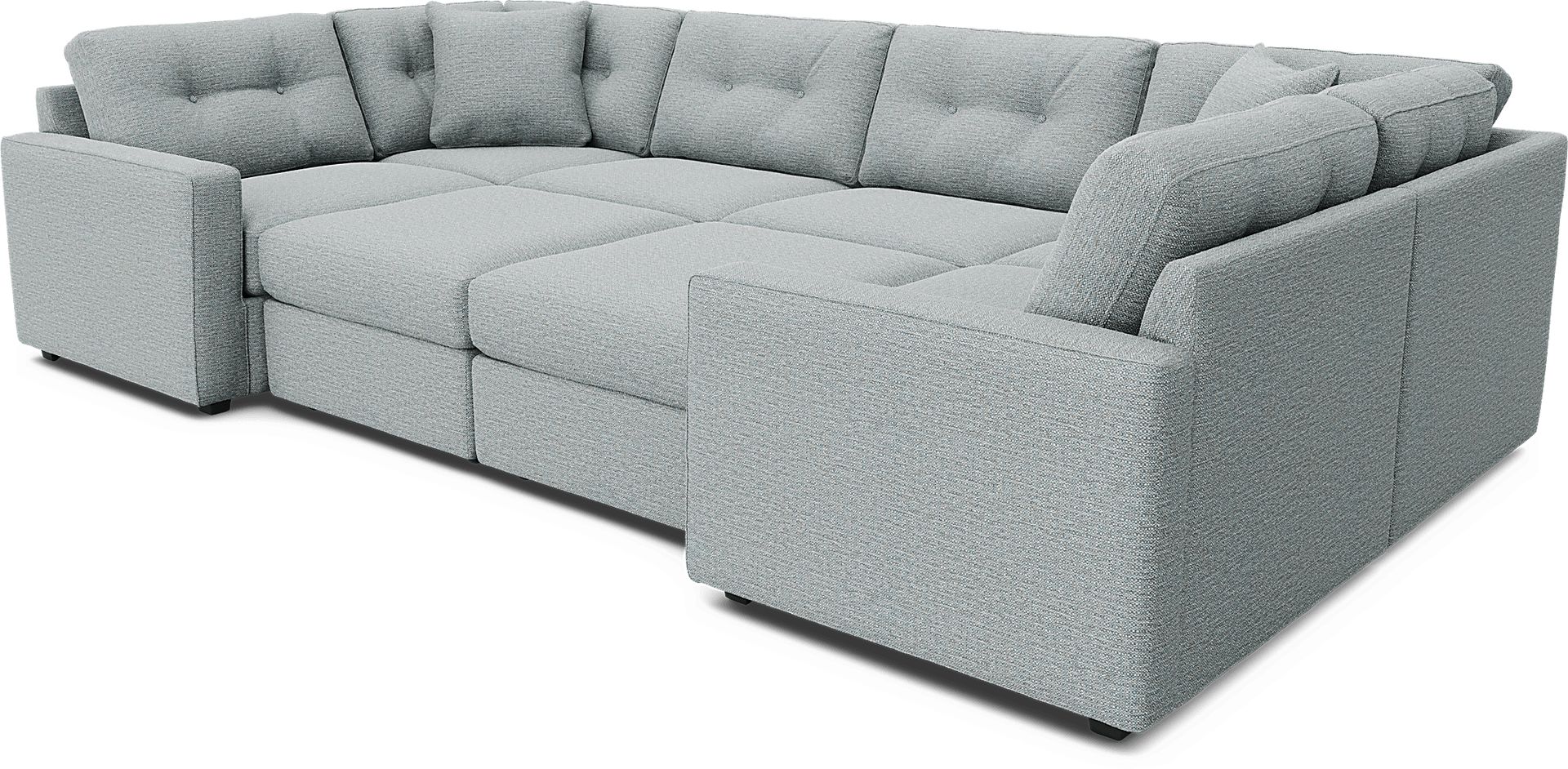 Discover the limitless possibilities of the Drew & Jonathan ModularOne, thoughtfully designed with comfort and flexibility in mind. This customizable seating solution features individual pieces that can be configured to any shape your room needs - the seating arrangement you want is always right at your fingertips. Each individual piece is upholstered on all sides in handsome spa textured fabric. The seating area has welted track arms, top-stitched seat cushions and button-tufted back cushions for an elegant silhouette. Includes LAF chair, 2 wedge seats, 2 armless chairs, RAF chair, and 2 storage ottomans. Upholstery: 100% Polypropylene