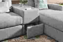 The integrated media consoles function as a high-tech command center for your living area. Each console features hidden storage for remotes and essentials, built-in Bluetooth-enabled speakers for an immersive audio experience, and both USB and wireless charging ports to keep your devices powered. Additionally, the consoles feature sleek acrylic tops, allowing them to serve as durable side tables for drinks or snacks.