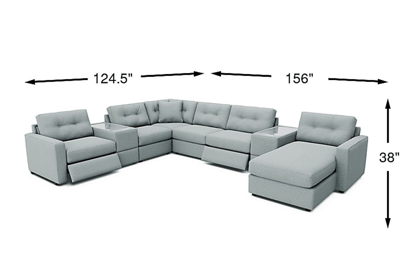 With expansive dimensions of 156"w x 124.5"d, this 8-piece sectional is an ideal anchor for large-scale spaces like home theaters or open-concept basements. The combination of power reclining seats, a spacious RAF chaise, and integrated Bluetooth speakers provides a theater-like experience, while the modular design allows you to scale the seating to accommodate large groups comfortably.
