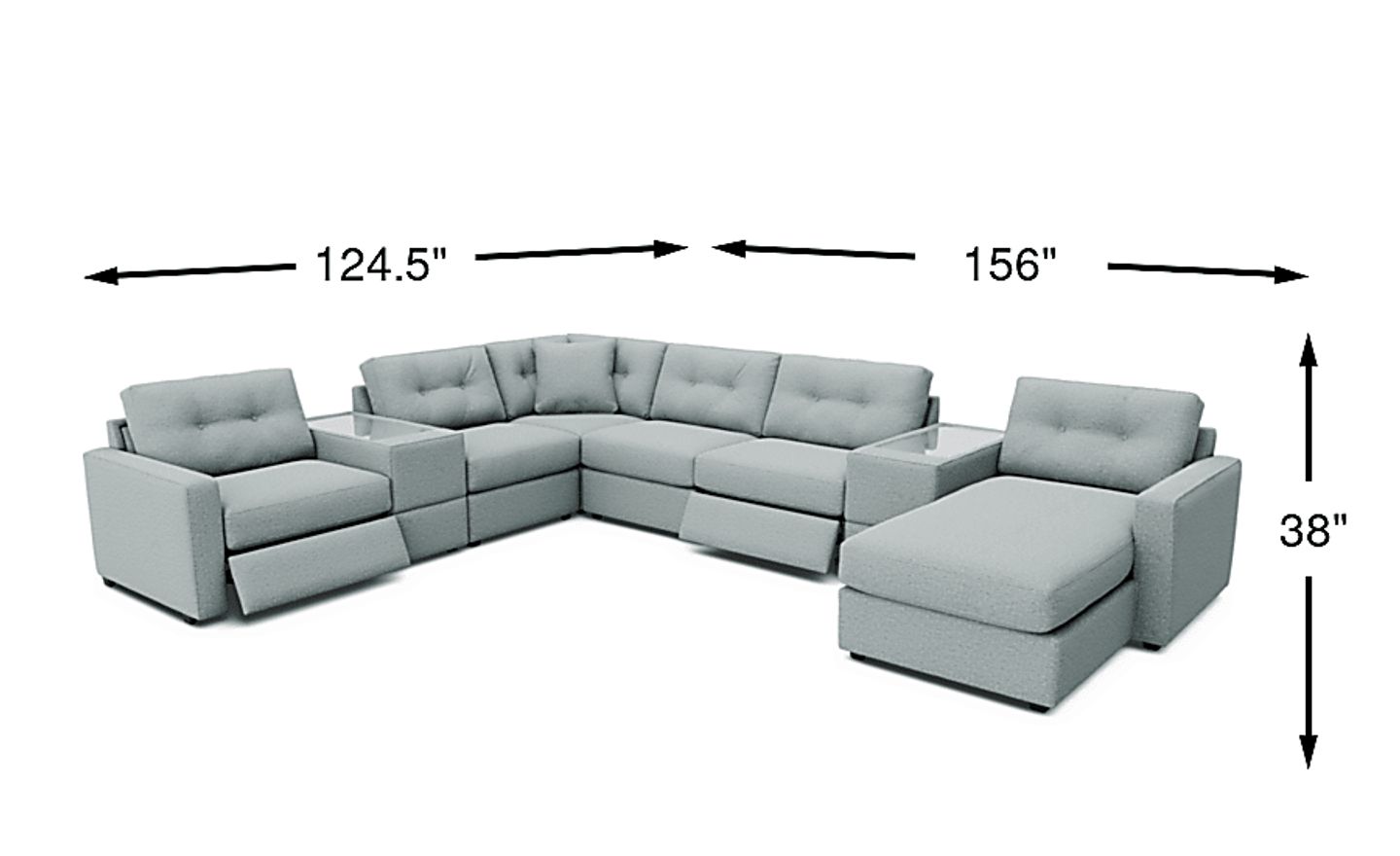 This sectional features multiple power reclining seats for customized comfort. To ensure full movement and avoid wall damage, we recommend placing the sectional a few inches away from the wall to allow the backrest to tilt. Given its significant 156-inch width and 124.5-inch depth, this set is ideally scaled for larger living areas or open-concept great rooms.