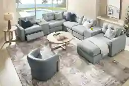 This 8-piece configuration includes two dedicated consoles. These pieces serve as functional hubs for your living space, providing convenient storage for remotes and accessories while offering integrated cup holders to keep drinks secure and within reach during movie nights or sporting events.